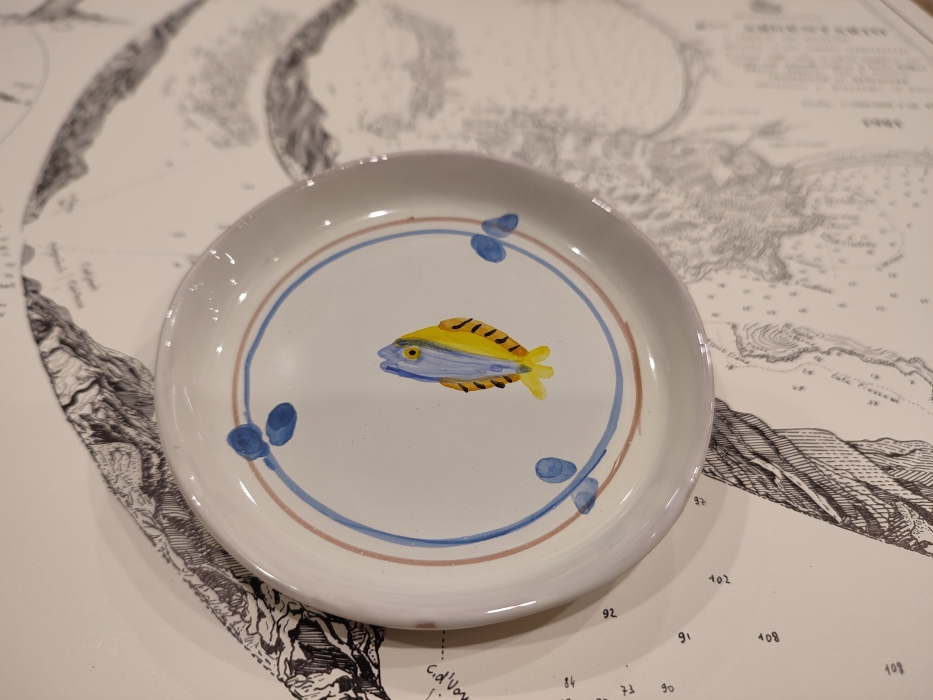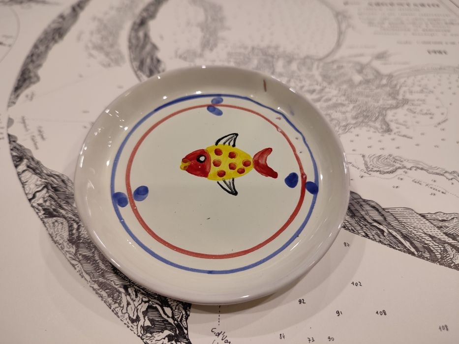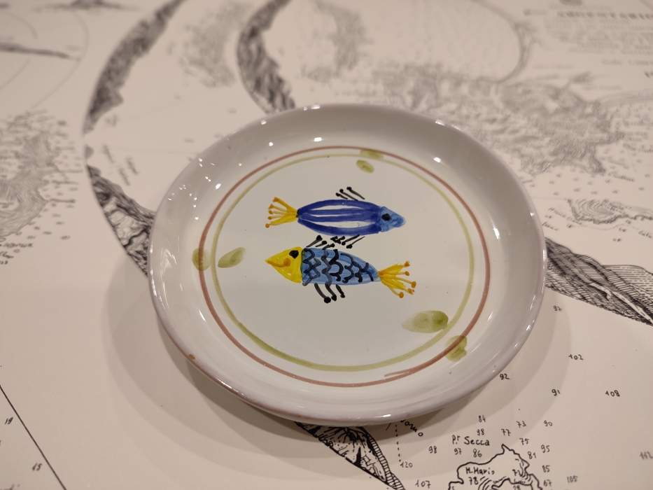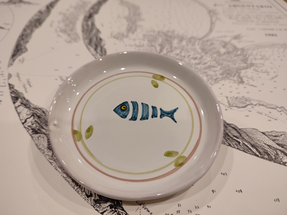 Le ceramiche per la tavola sono realizzate a mano su biscotto di terra rossa, smaltate e decorate con colori senza piombo.