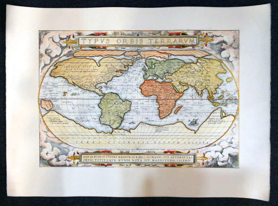 Questa riproduzione di una stampa antica (originale di Ortelio) è stata impressa con il torchio a mano su carta pregiata e acquarellata a mano da pittori esperti.