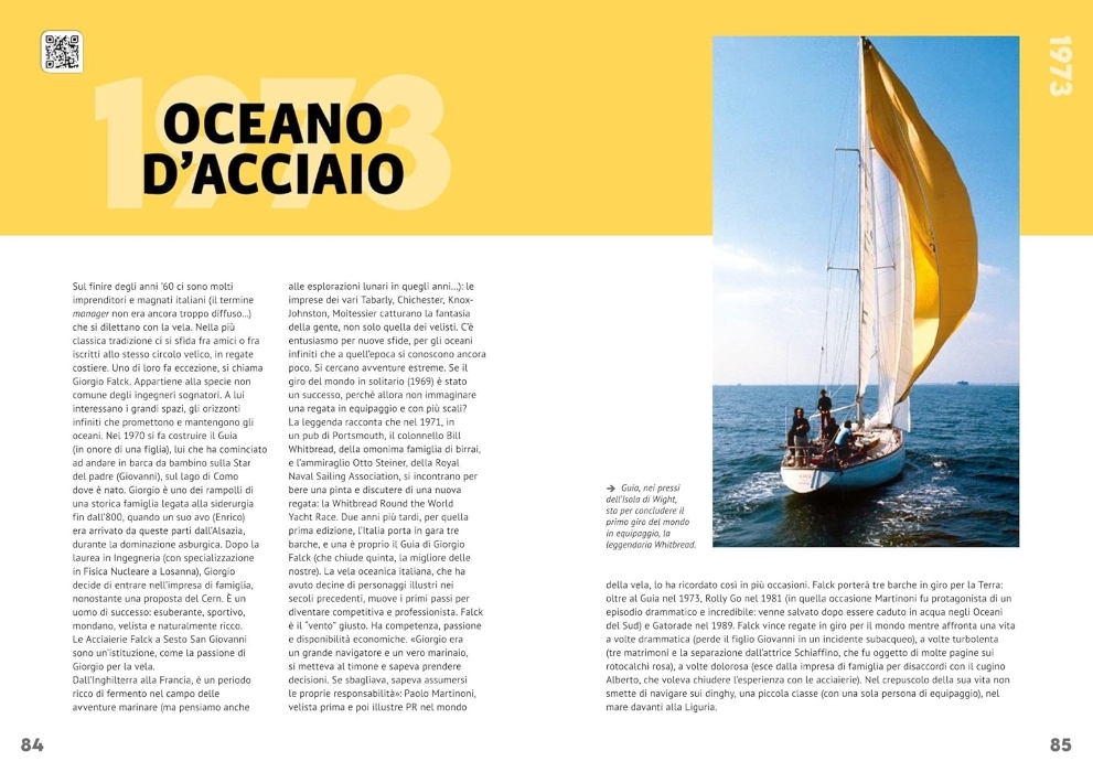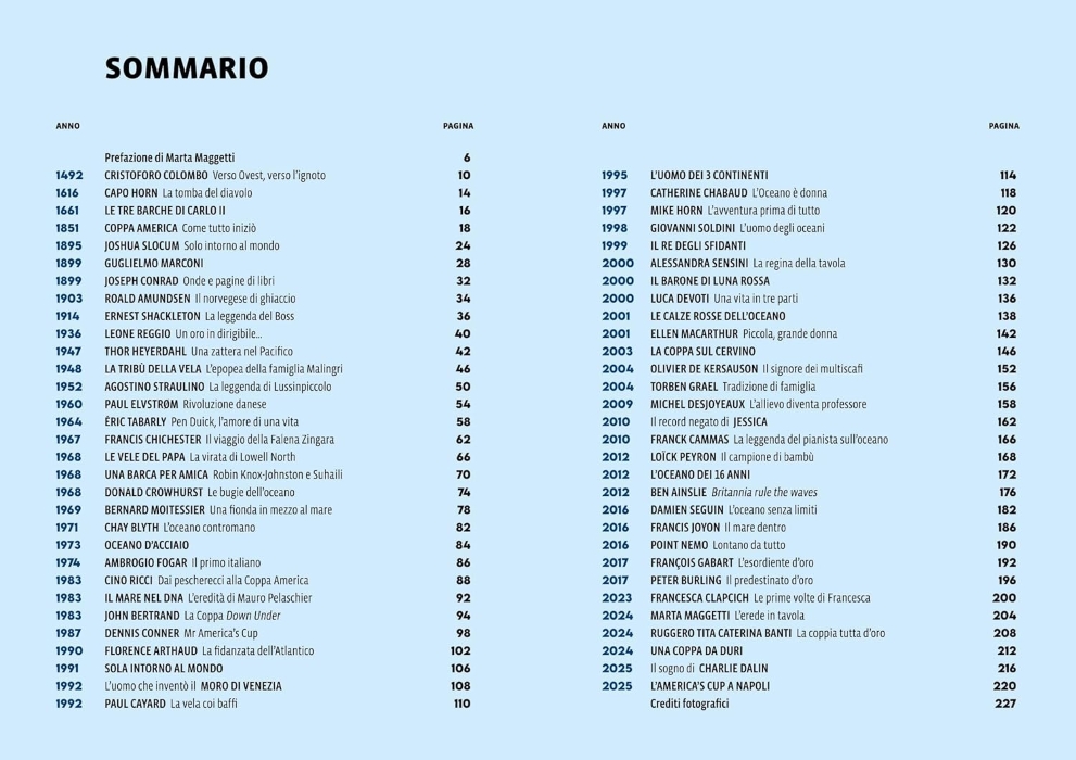 Una raccolta di “momenti magici” dei protagonisti, del passato e del presente, oltre a un’ampia sezione dedicata alle regate più famose. Testi accattivanti e immagini tratte dai migliori archivi fotografici sono accompagnati da codici QRcode che danno accesso a numerosi video online.