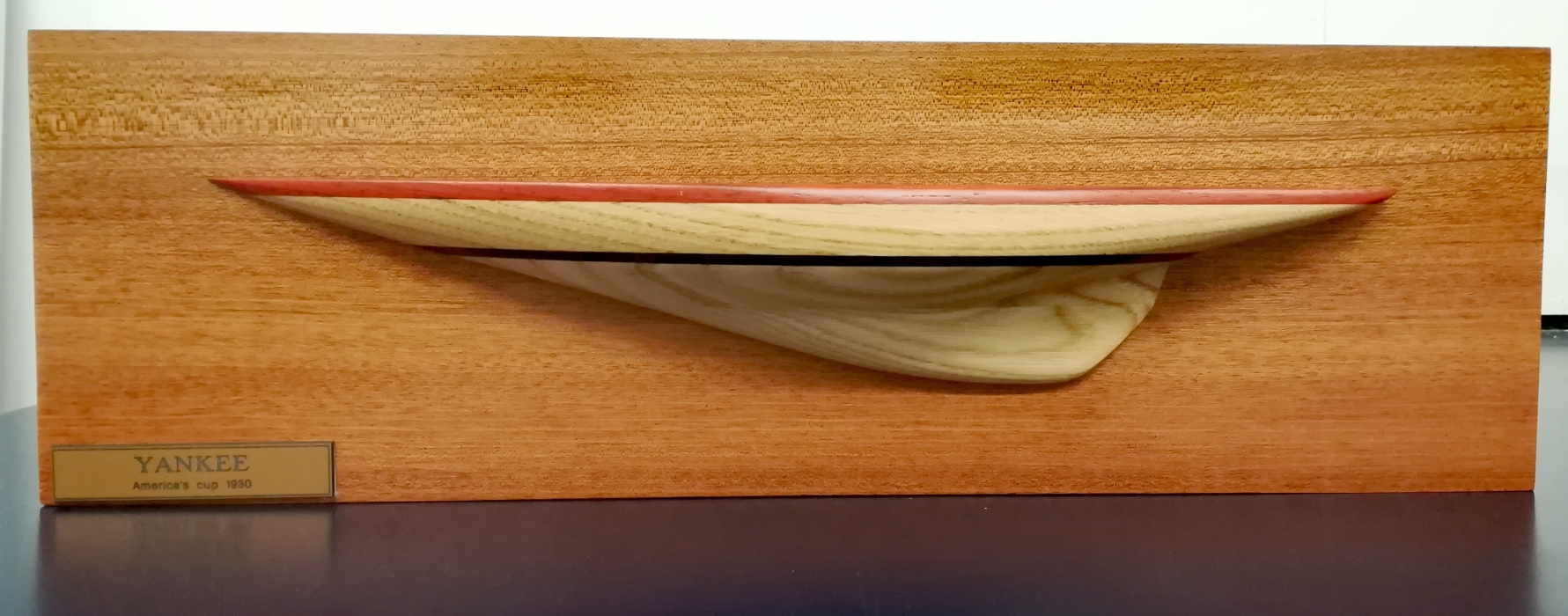 Mezzo scafo in legno che riproduce la barca a vela Yankee nel 1930, anno in cui partecipò alla Coppa America.
